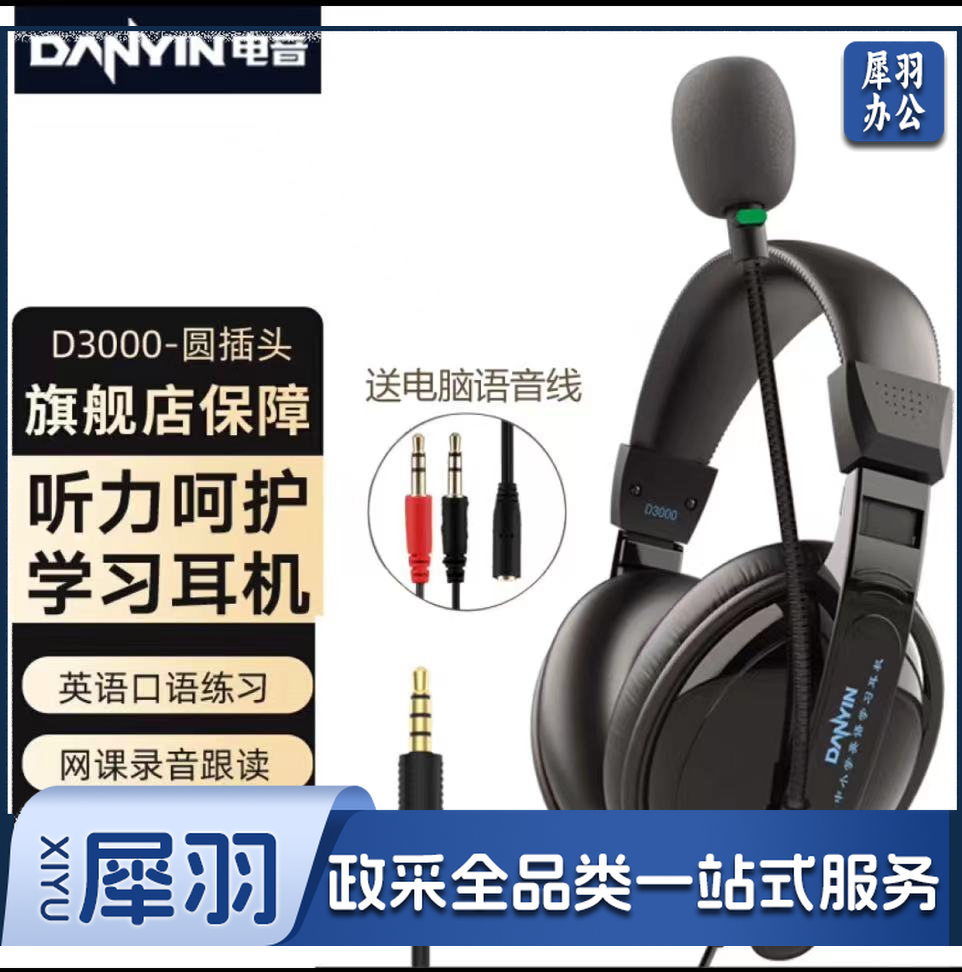 电音 D3000 USB 学生网课耳麦带话筒头戴式电脑耳机 教育耳机 中考高考听力听说口语训练专用耳麦