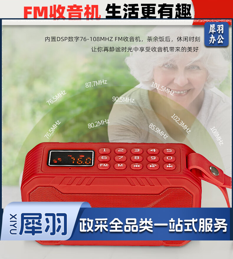 小霸王 D100蓝牙音箱迷你低音炮带收音机户外便携式插卡U盘广场舞小音响 红色