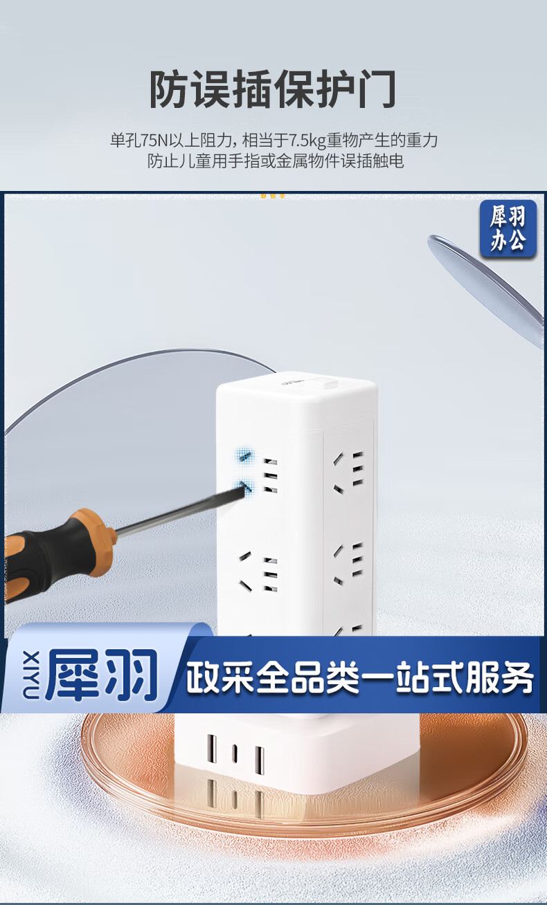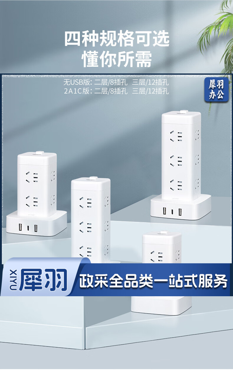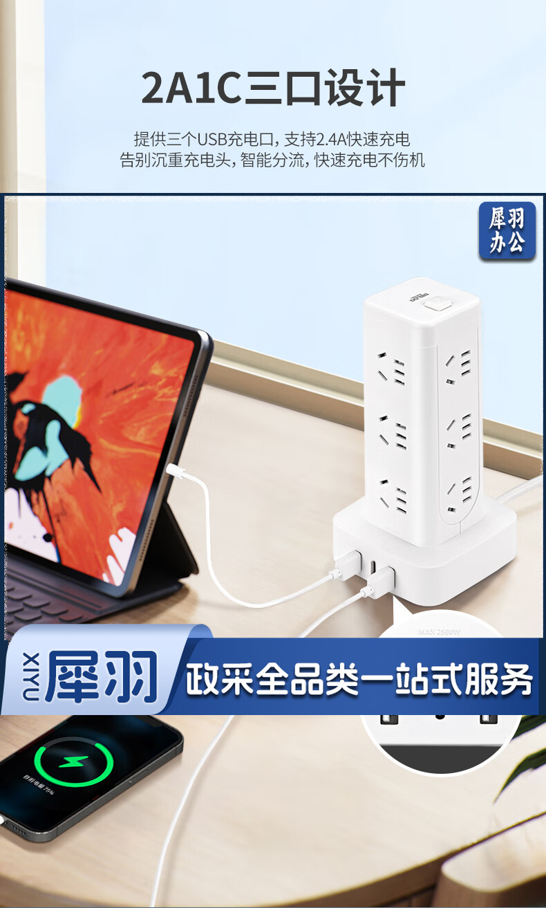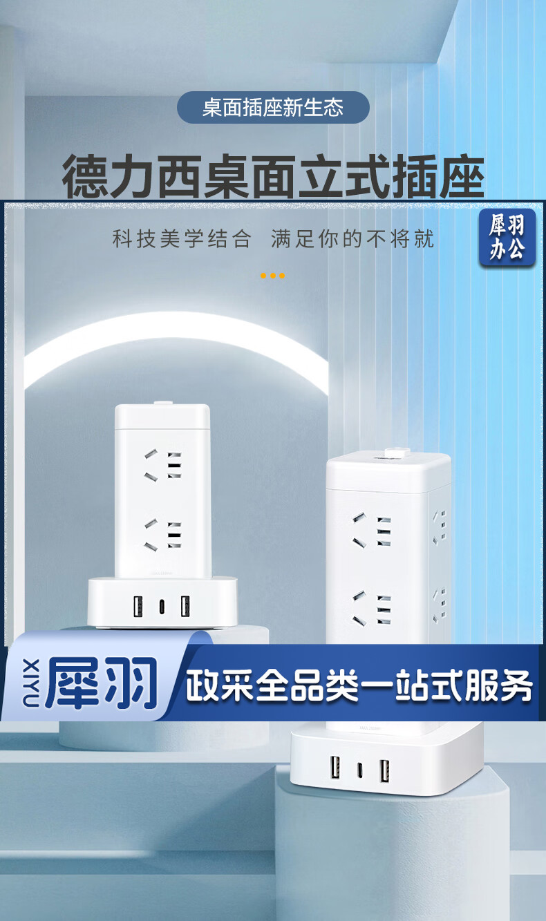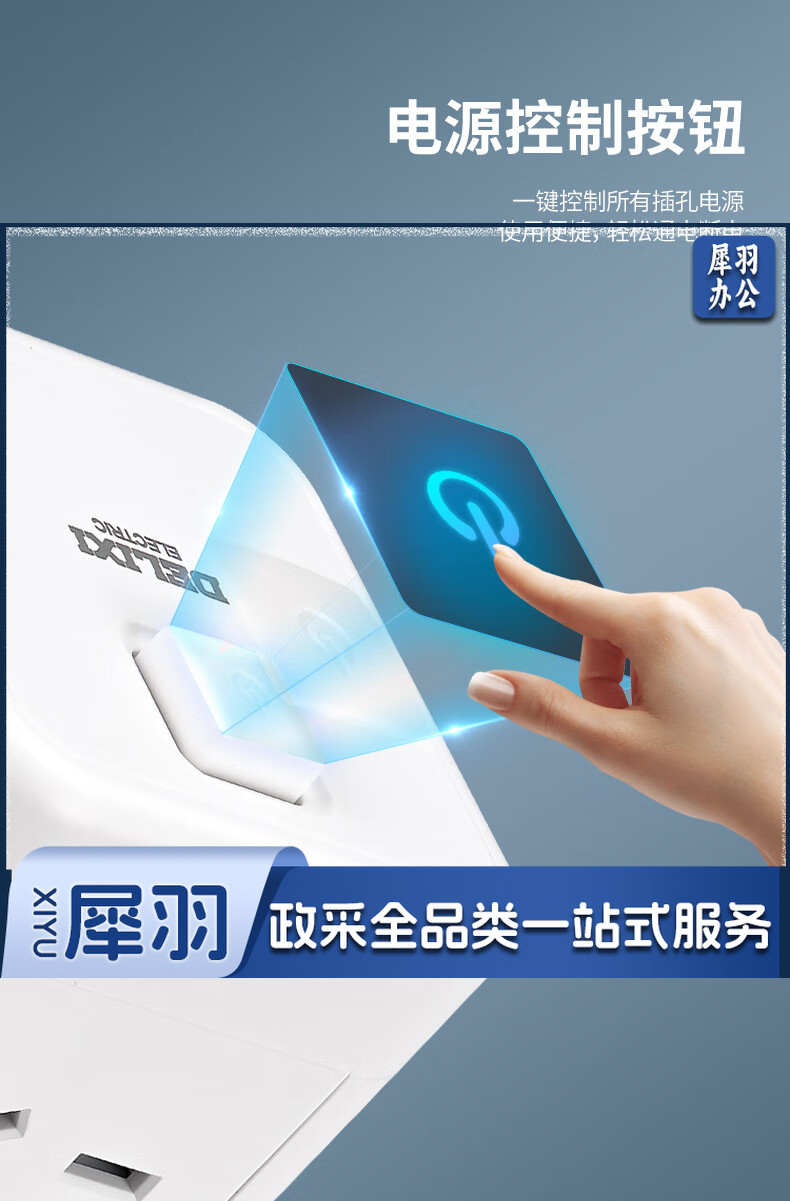 德力西(DELIXI)立式插座/插排/排插/插线板/插板/接线板/拖线板 12位五孔USB+TYPE-C总控3米过载保护
