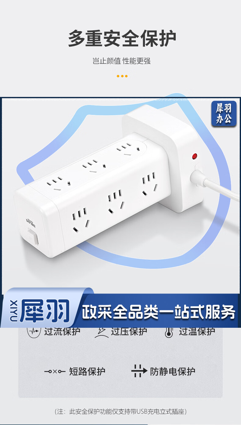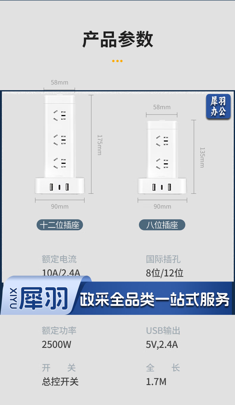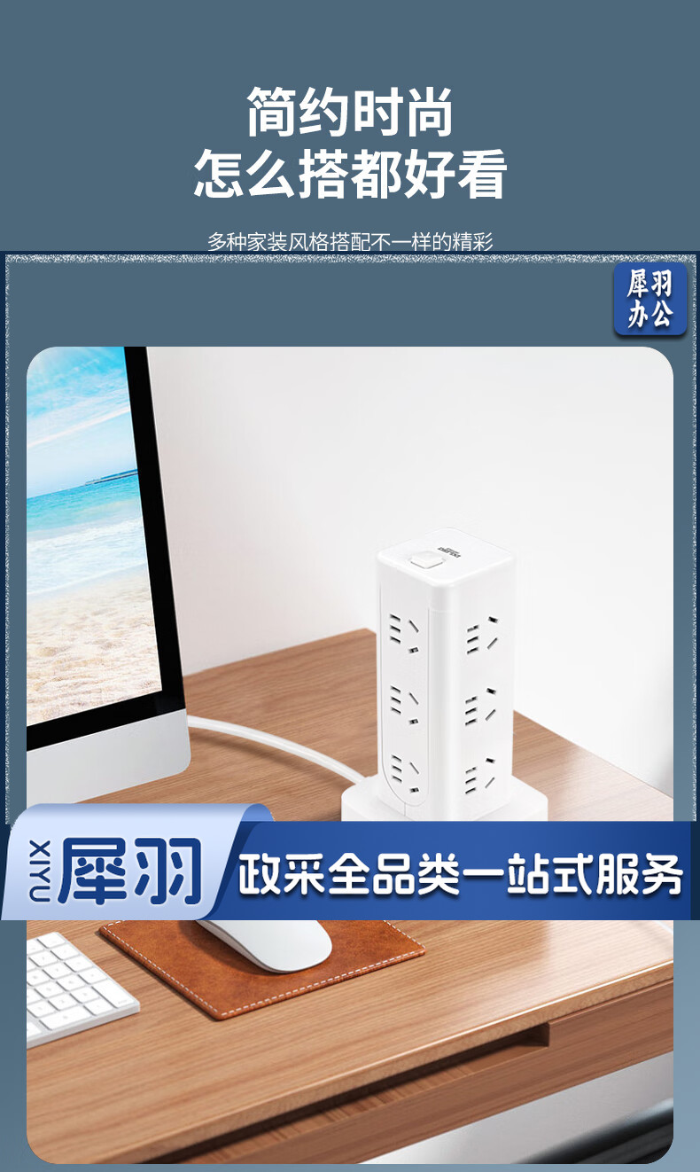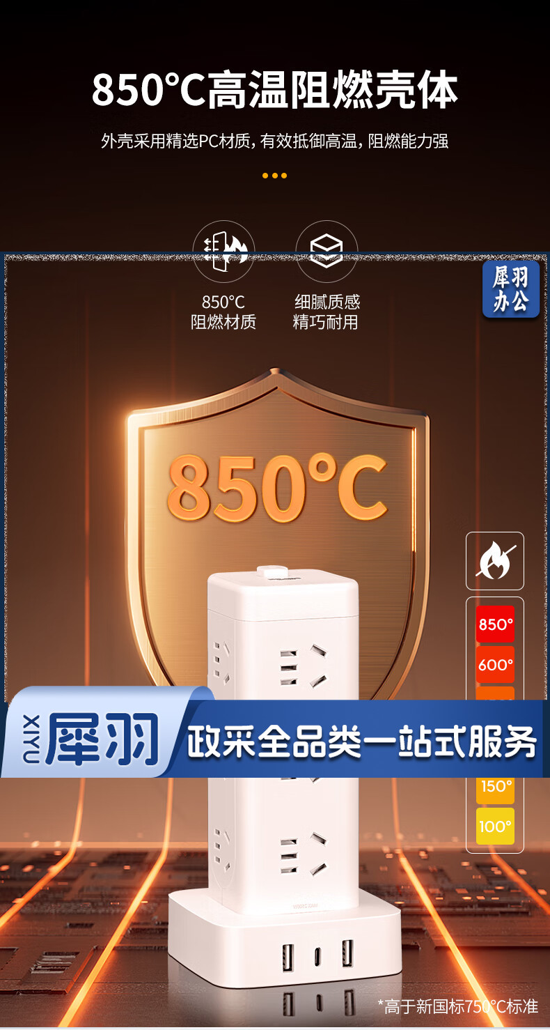 德力西(DELIXI)立式插座/插排/排插/插线板/插板/接线板/拖线板 12位五孔USB+TYPE-C总控3米过载保护