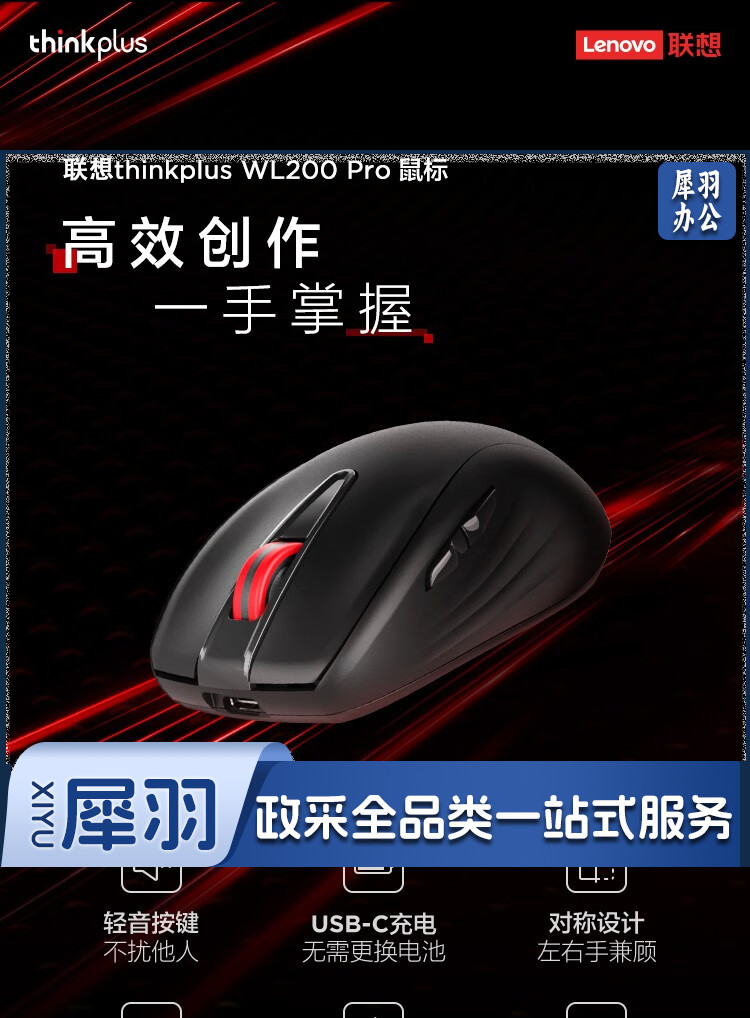 ThinkPad 无线鼠标 笔记本电脑办公鼠标 36003450人体工学垂直无线鼠标【黑色】