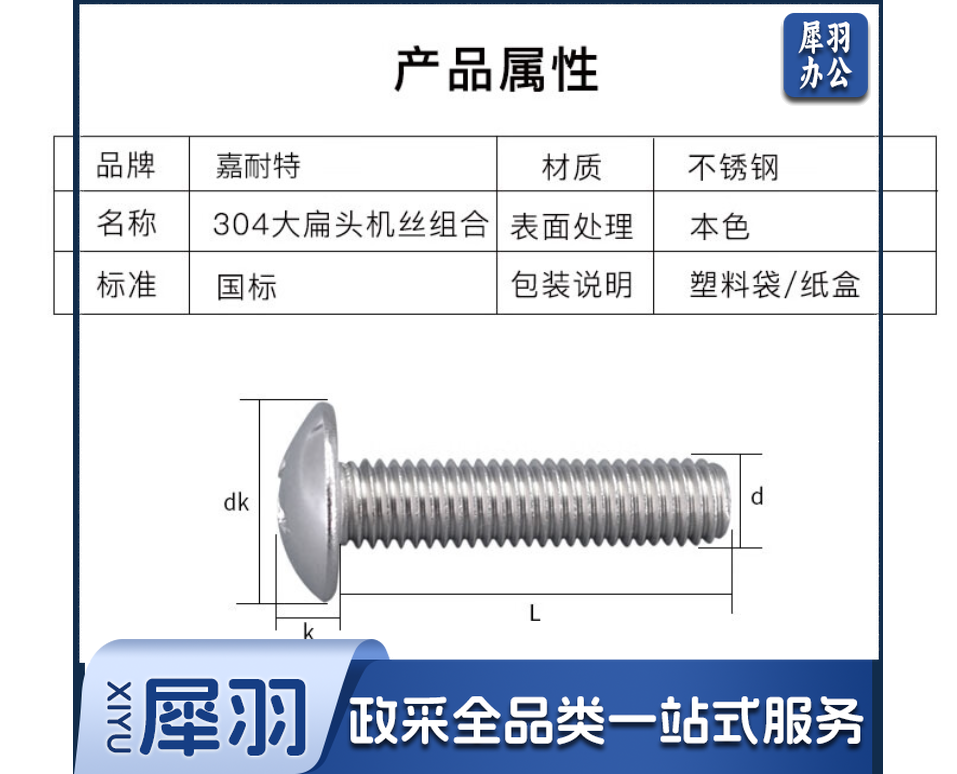 大扁头十字满扣螺丝 (不锈钢)M8*75mm
