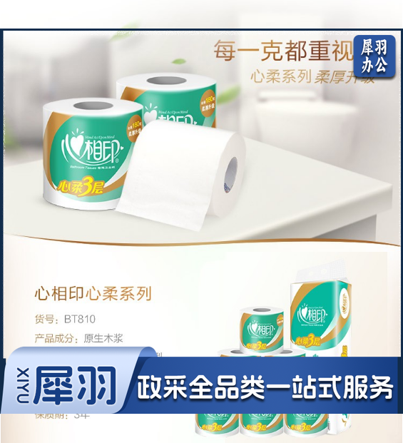 心相印BT810心柔有芯卷筒纸家用卫生纸心心相印厕所纸3层180g