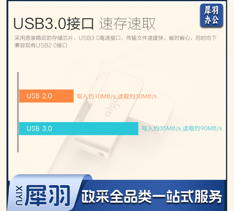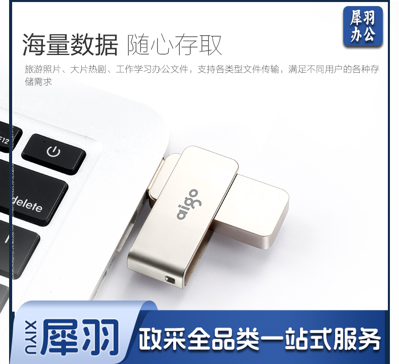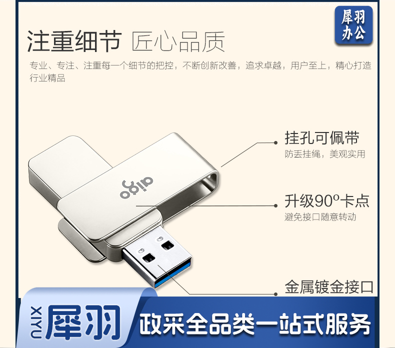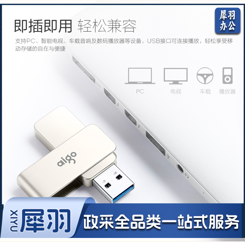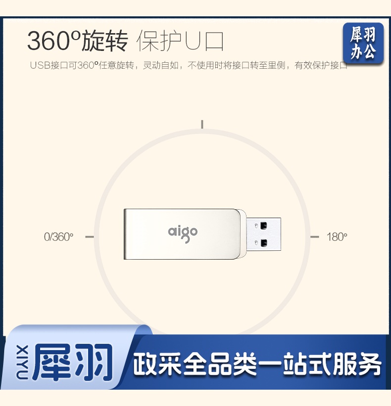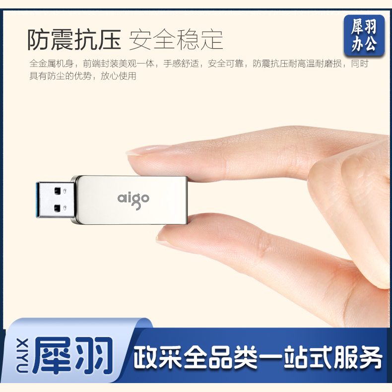 爱国者(aigo)32GB USB3.2 U盘 U330金属旋转系列 银色 快速传输 出色出众