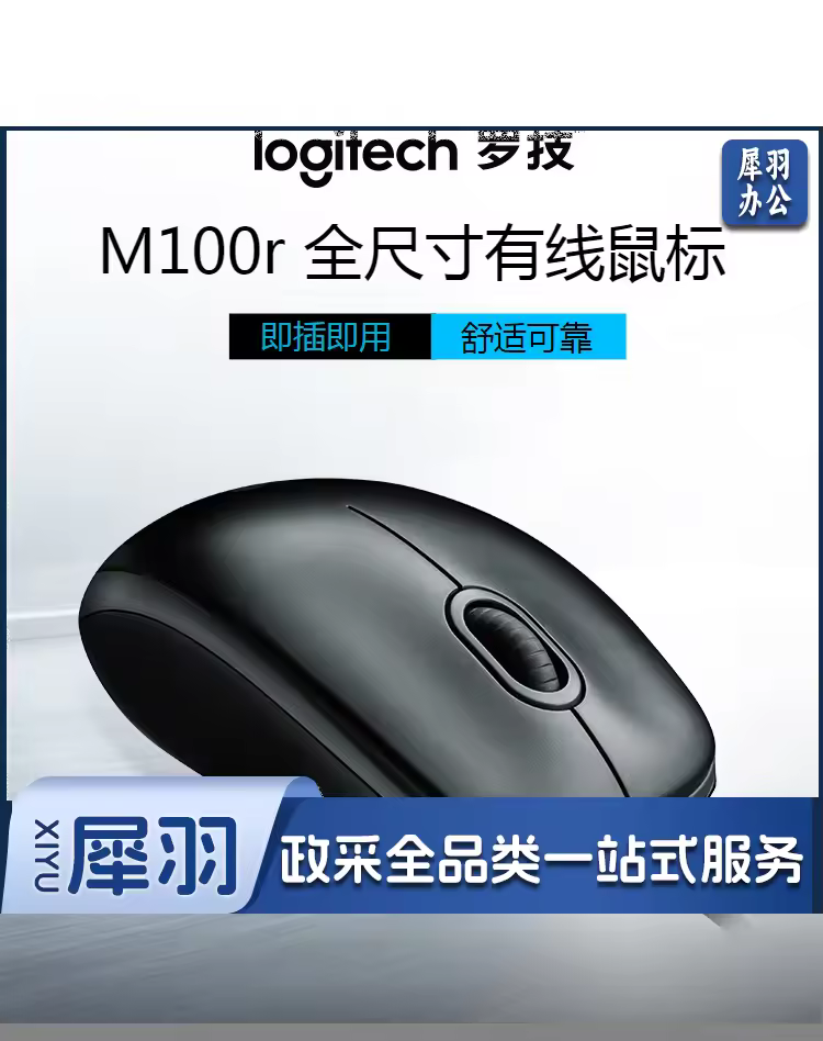 罗技(Logitech) M100r办公鼠标 电脑笔记本家用有线外设 左右手通用