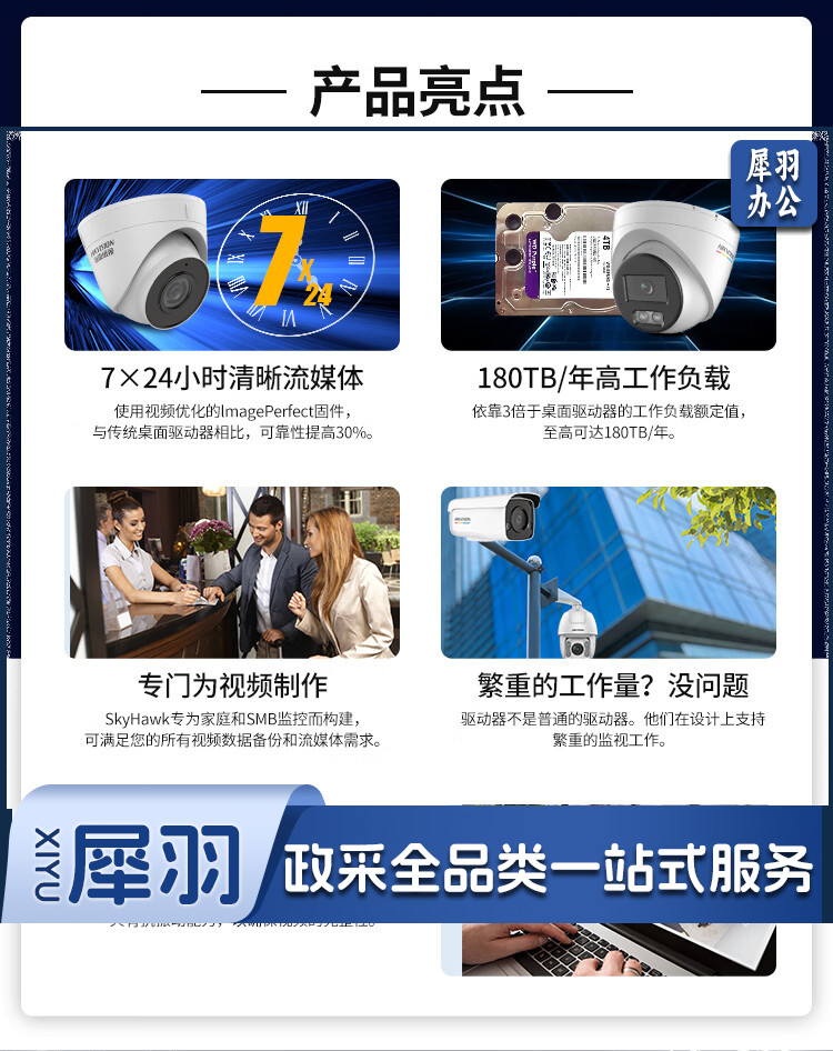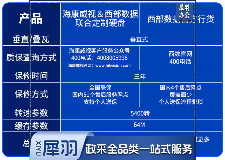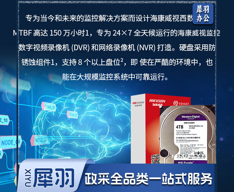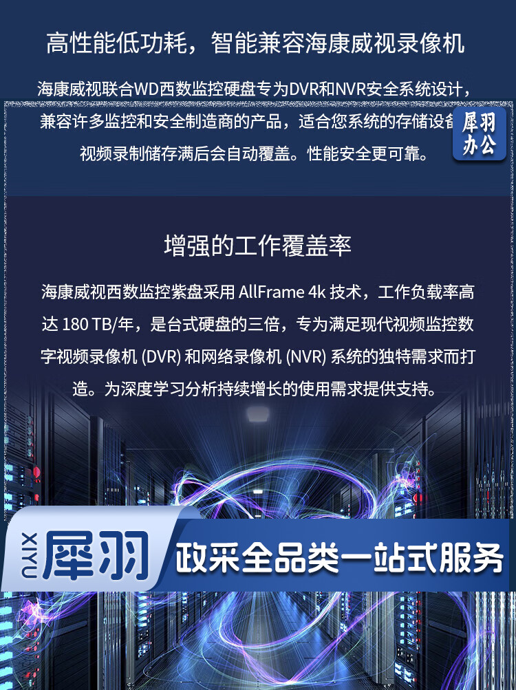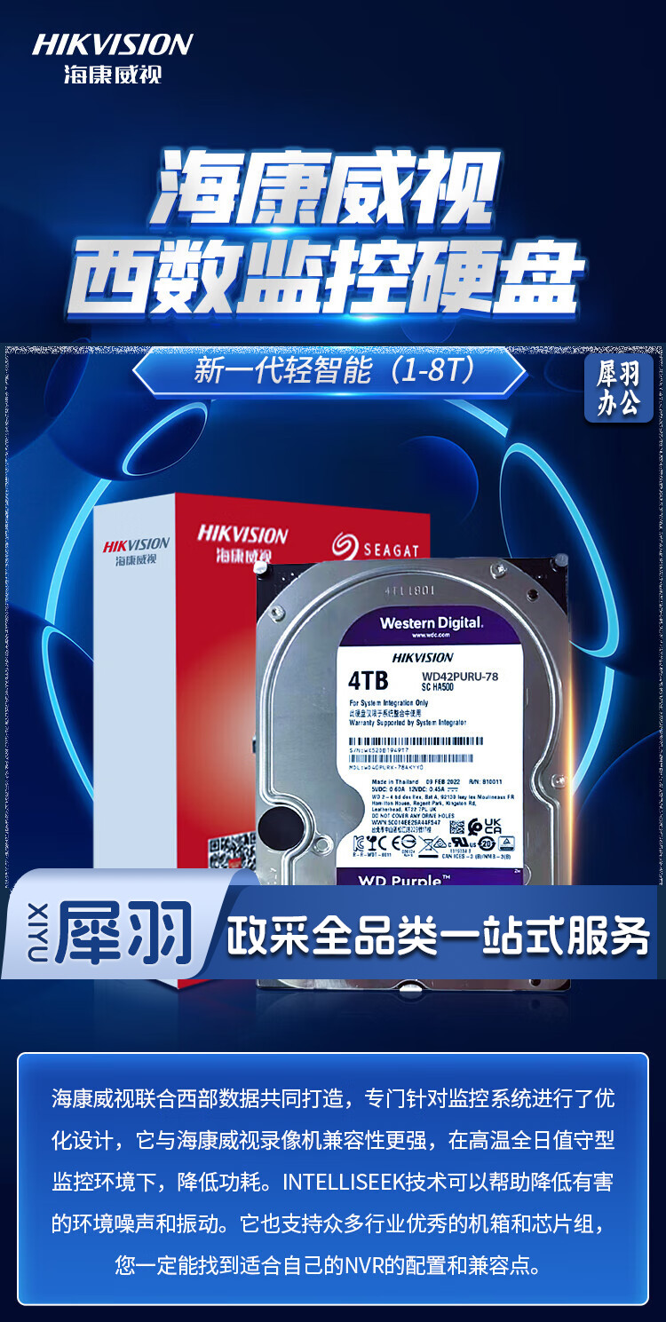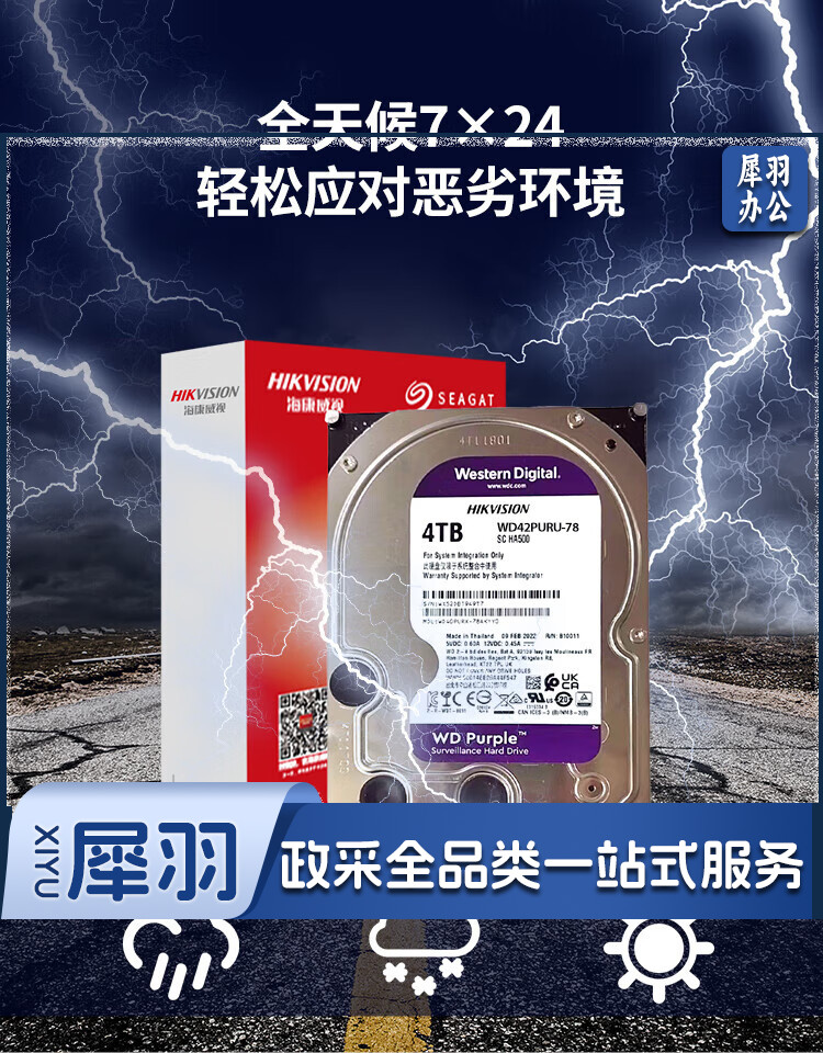 海康威视HIKVISION WD60PURX硬盘 西数WD监控硬盘 紫盘6TB 监控设备套装配件录像机专用监控硬盘