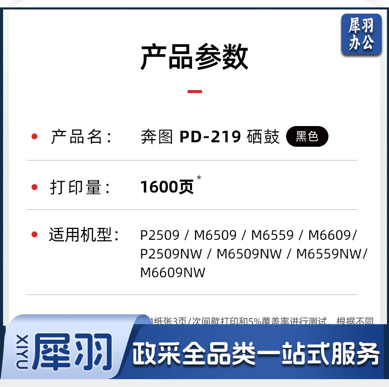 奔图(PANTUM)PD-219原装硒鼓适用P2509 P2509NW碳粉盒M6509 M6509NW M6559 M6559NW M6609 M6609NW打印机墨盒