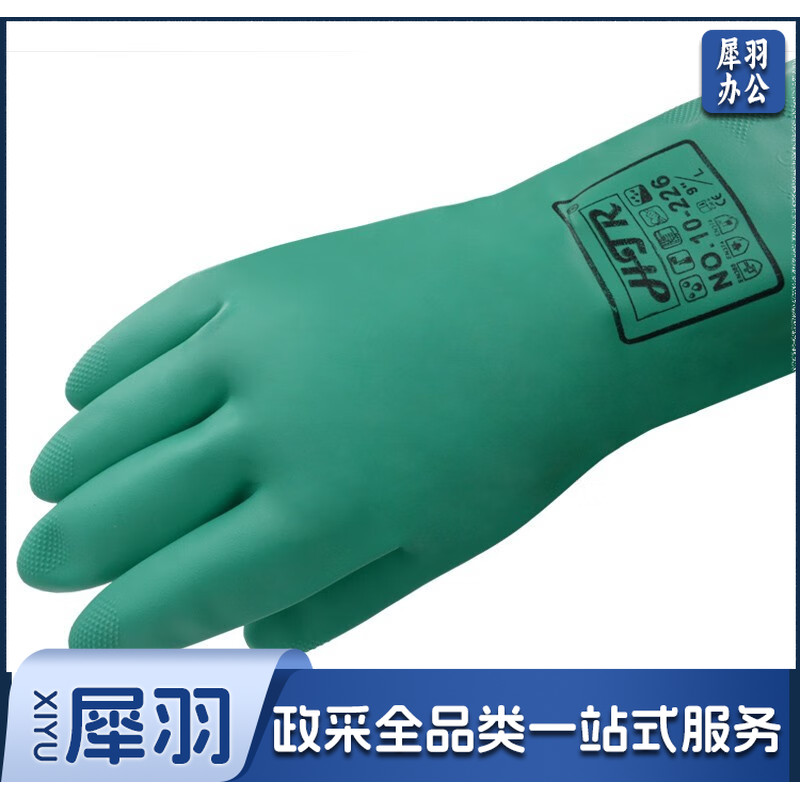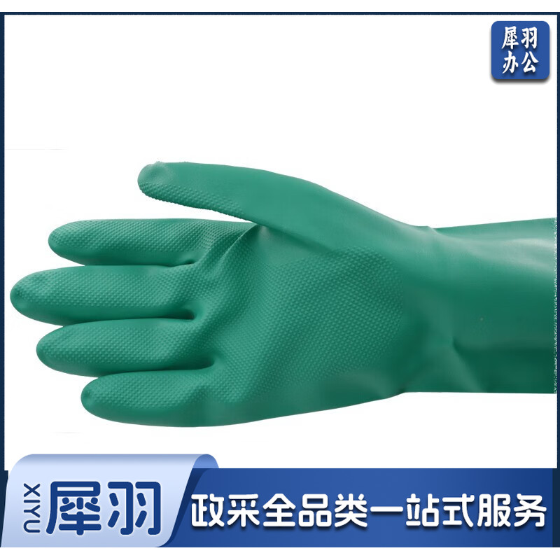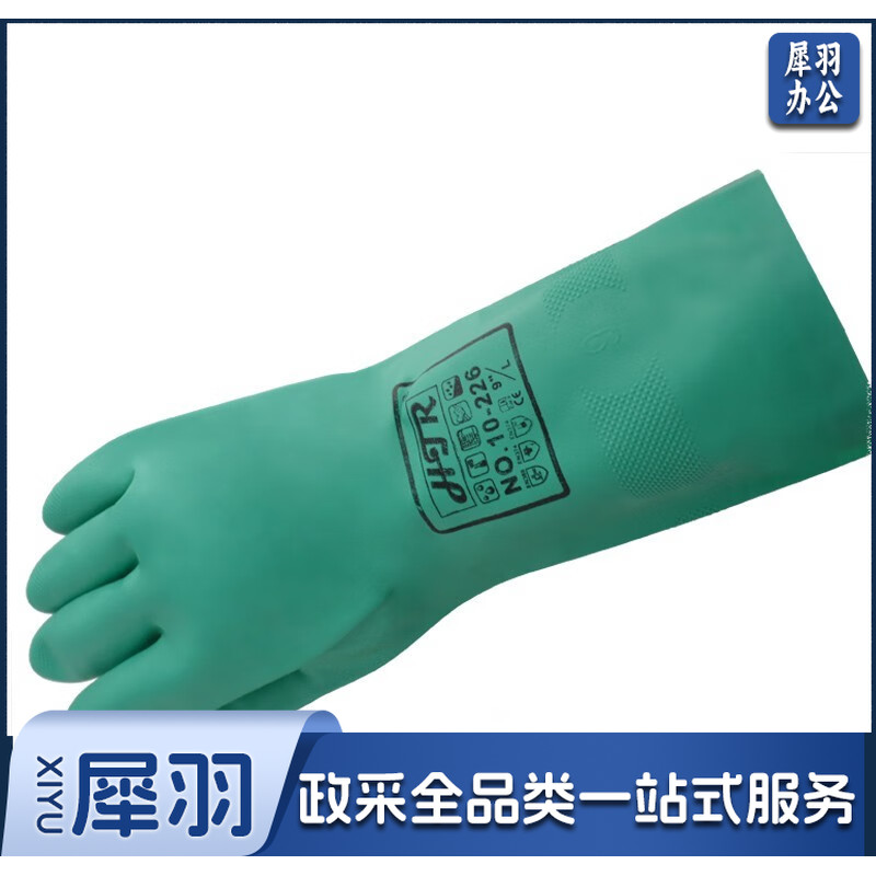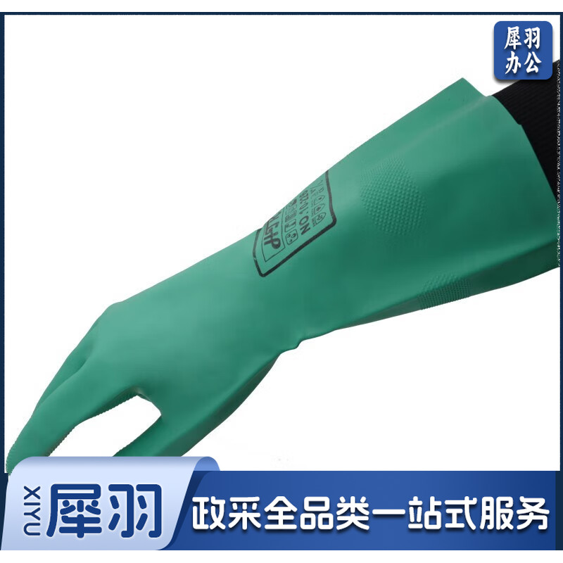 海太尔丁腈防化学品手套 耐磨耐酸碱绒面衬里 33CM手部防护