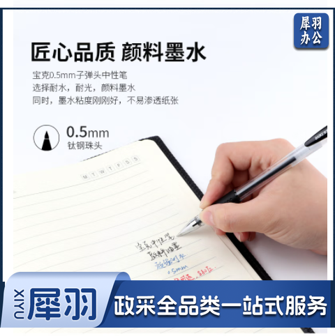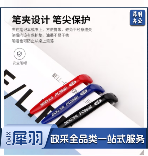 签字笔 宝克(BAOKE)PC880E 0.5mm子弹头中性笔 办公水笔签字笔 黑色 12支/盒,整盒起售