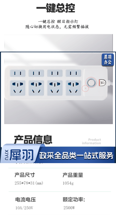 接线板 子弹头 TS-402c 8位全长7.8米 儿童保护门 电源插座/插排/插线板/接线板/拖线板/插板 总控开关