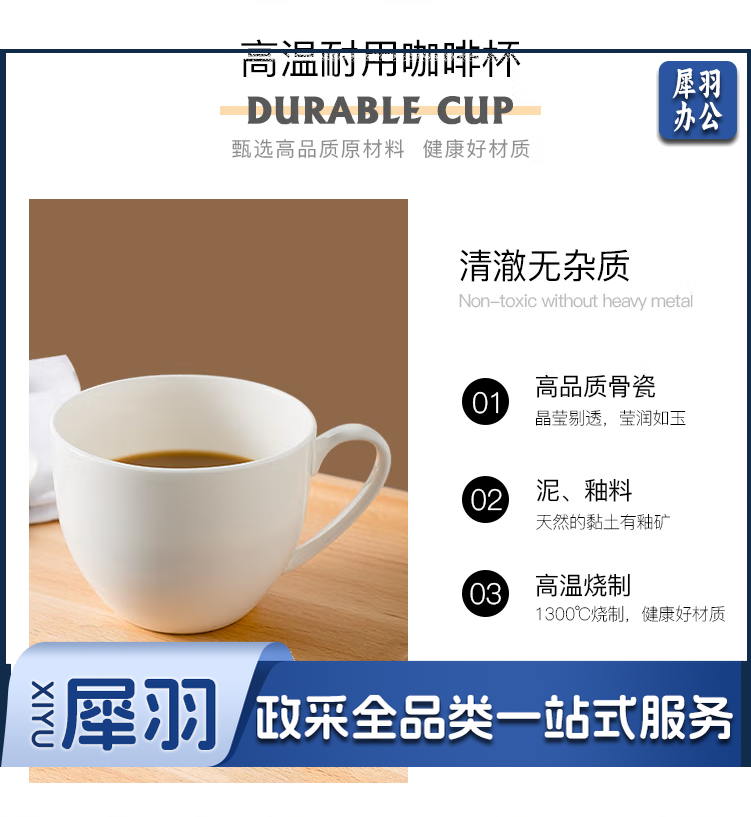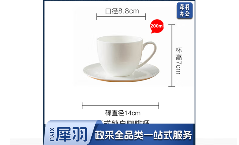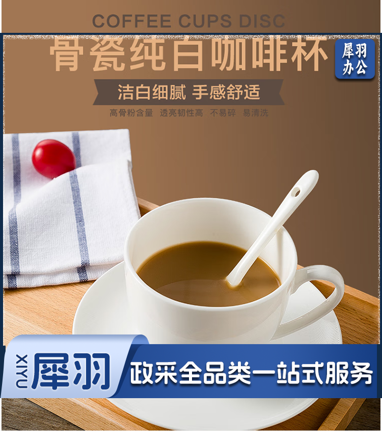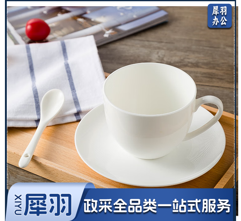陶瓷杯碟 英式杯具套装 一杯一碟一勺纯白骨瓷杯