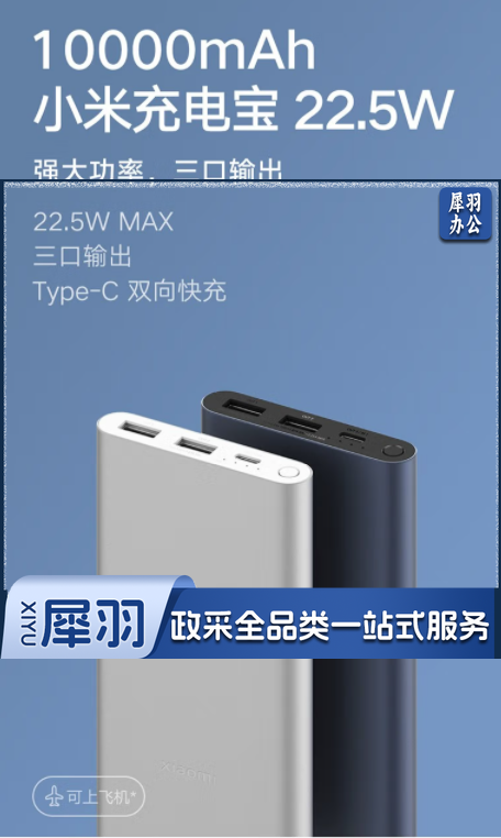 小米(MI) 充电宝移动电源3代10000毫安22.5W可选轻薄双向快充手机平板通用充电宝 22.5w双向快充 银色 标配