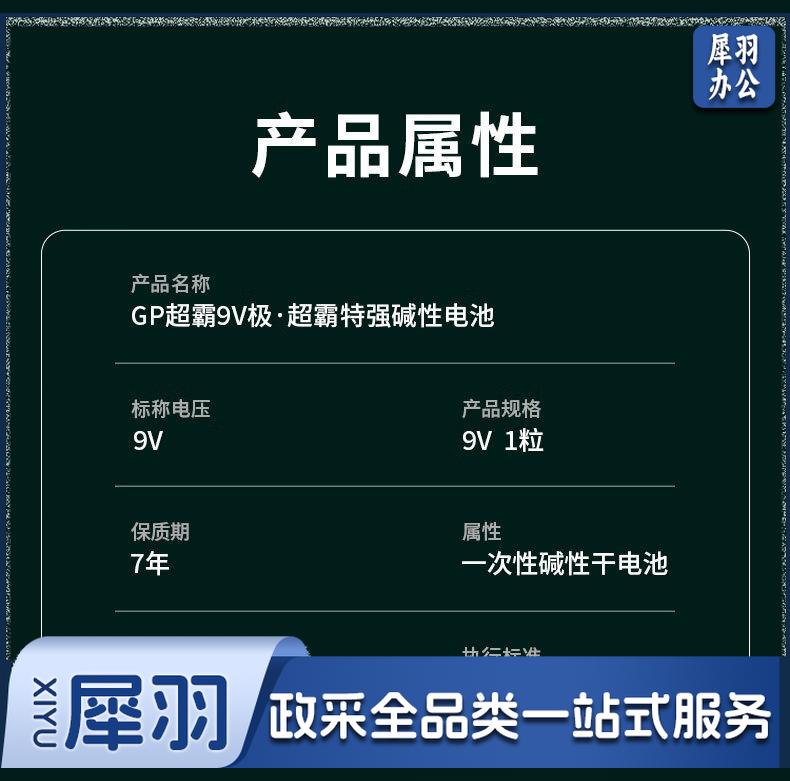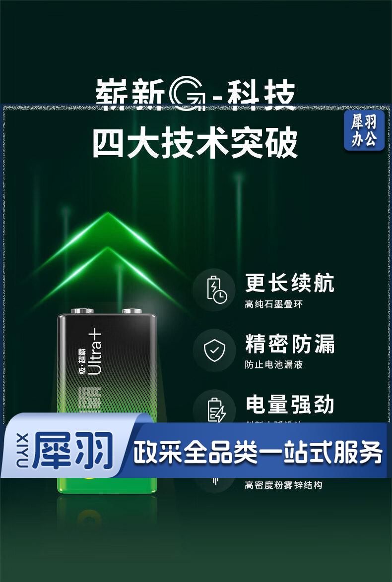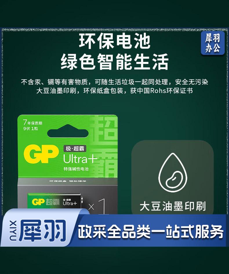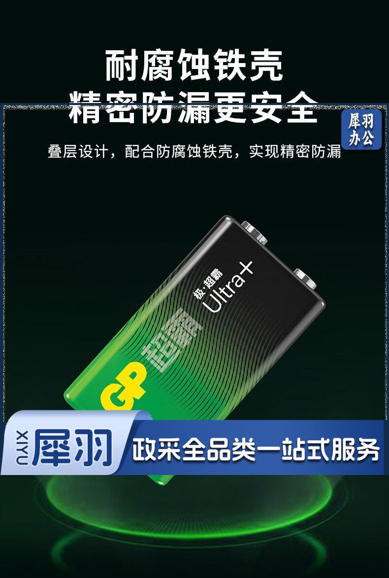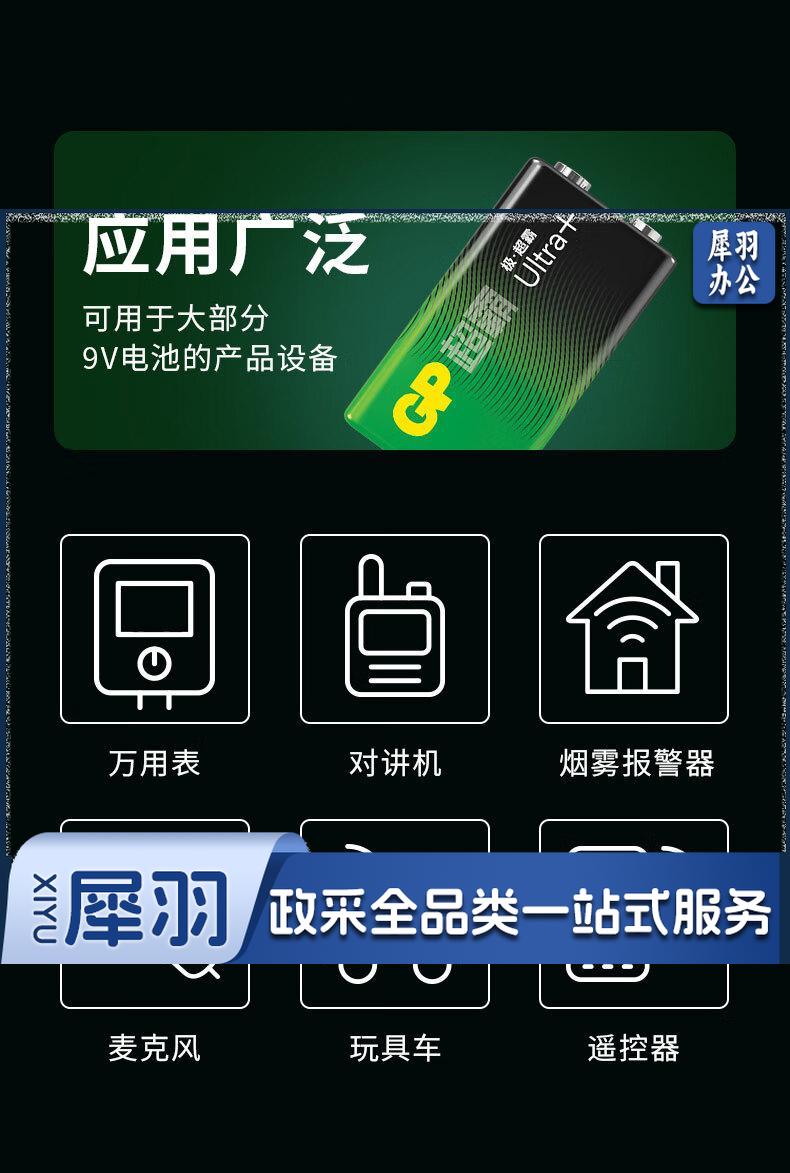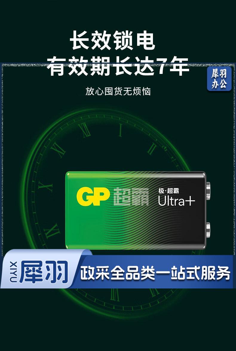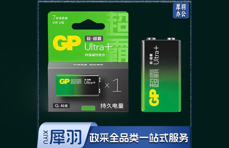 超霸(GP)9V 1粒 碱性方块电池九伏U能高性能数码适用于万能表/无线麦克风/电子仪表等商超同款电池