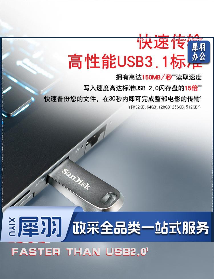 闪迪(SanDisk) 32GB USB3.1 U盘CZ74 读速150MB/s 全金属高品质u盘 安全加密 学习办公商务优盘