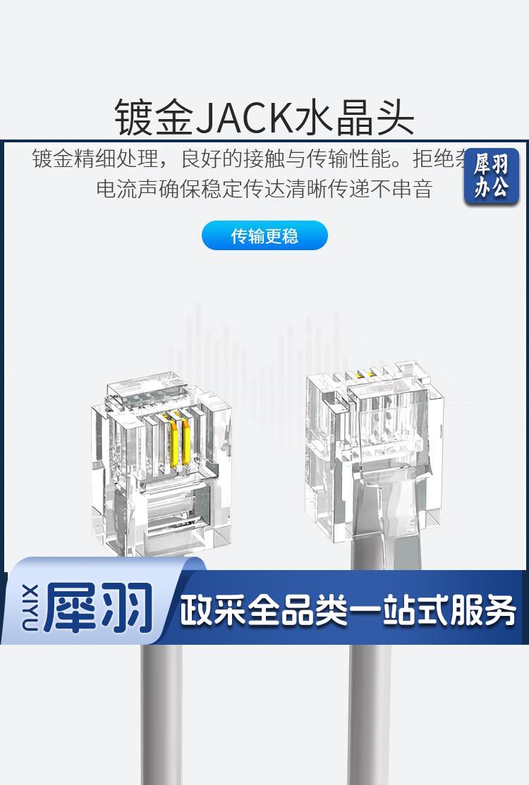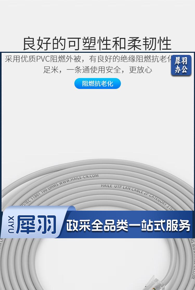 海乐(Haile)电话线2芯 HT-100-3M 纯铜 成品跳线 带水晶头 灰色 3米