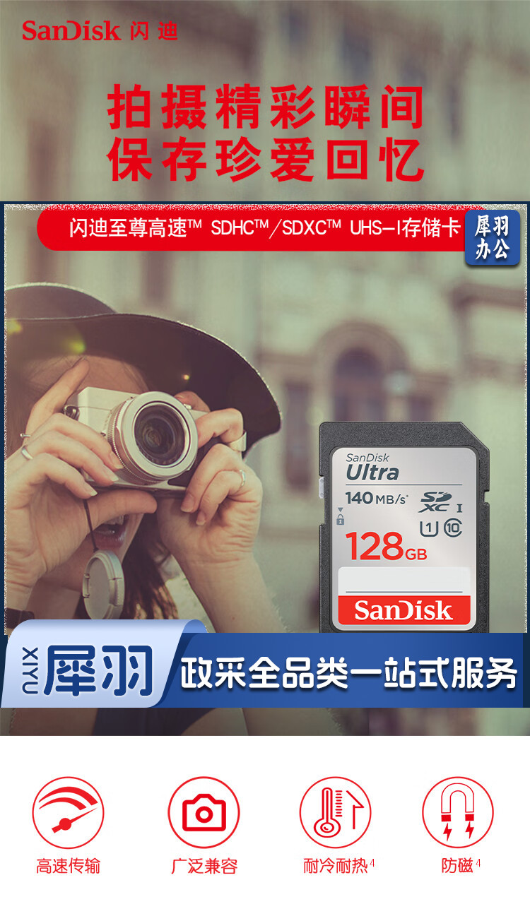 闪迪(SanDisk)128GB SD存储卡 C10 至尊高速版内存卡 读速140MB/s 捕捉全高清 数码相机理想伴侣