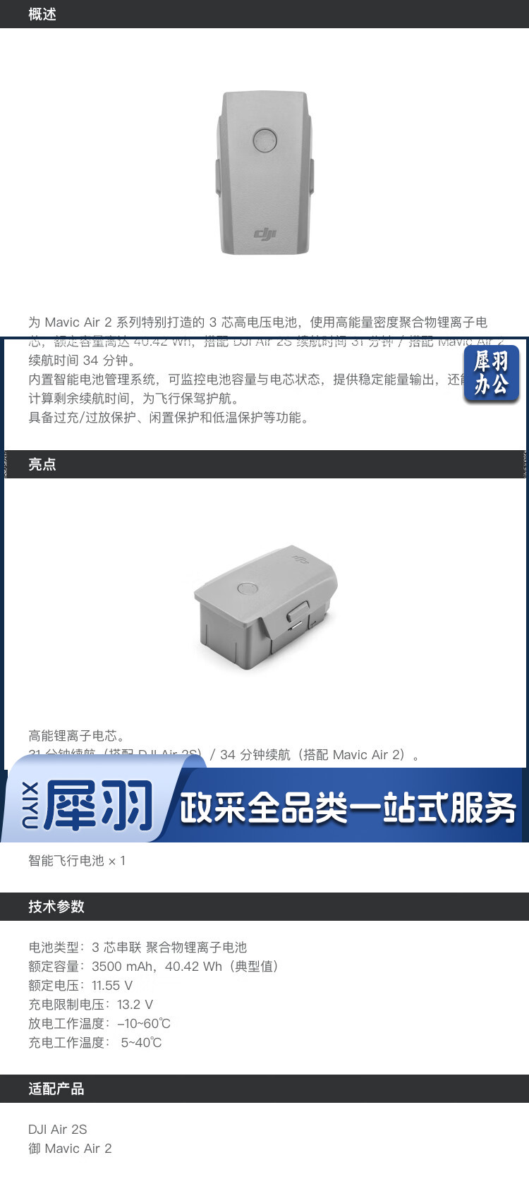 大疆 DJI 御 Mavic Air 2 / DJI Air 2S 智能飞行电池 DJI御 Mavic Air 2 / DJI Air 2S 配件 大疆无人机配件