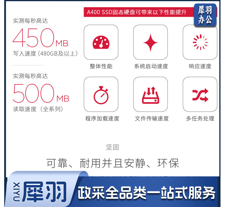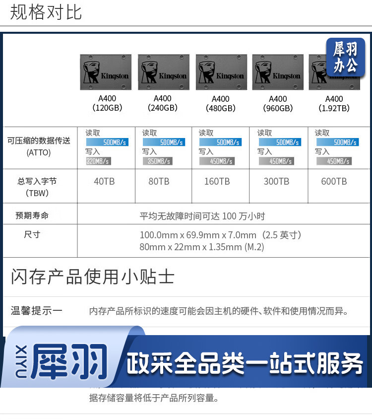 金士顿(Kingston) 240GB SSD固态硬盘 SATA3.0接口 A400系列