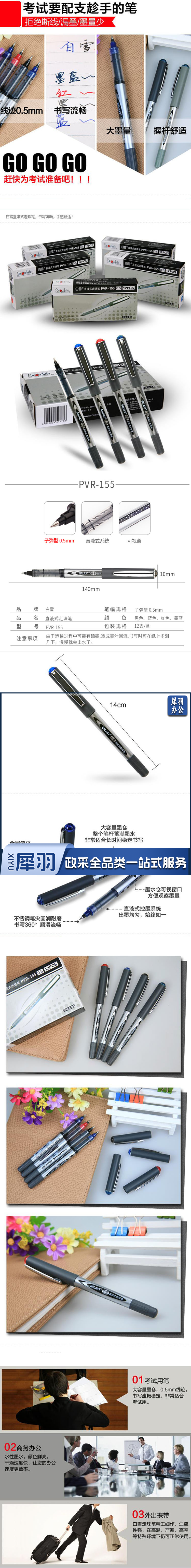 白雪 PVR-155 黑色 直液式走珠笔 0.5 (12支/盒)单支价