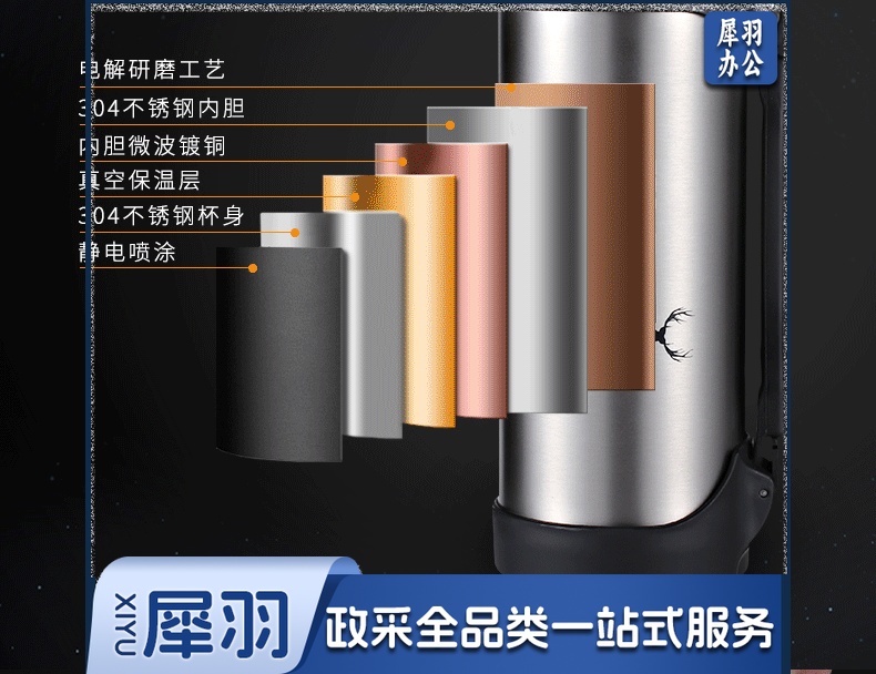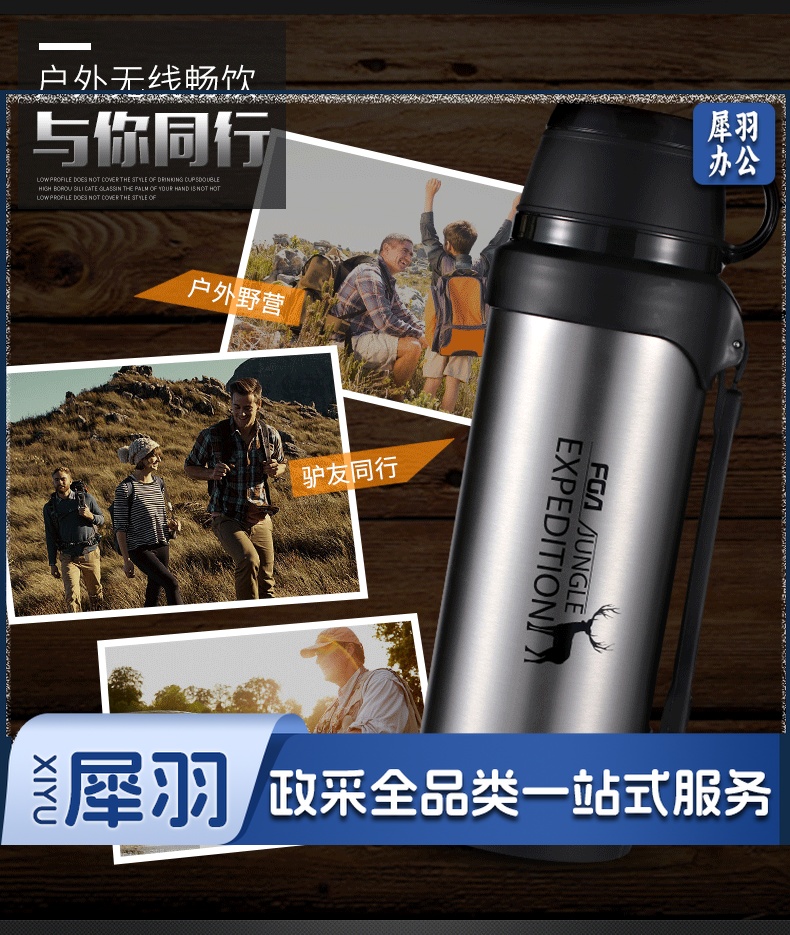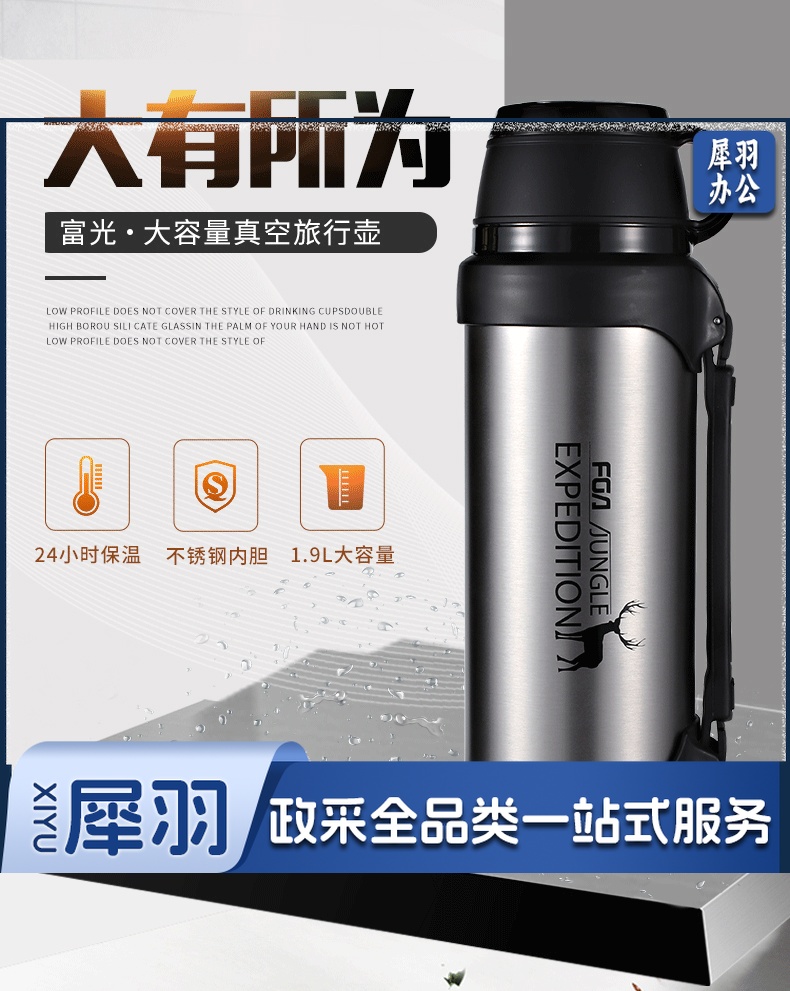 富光 FZ186062-1900大容量不锈钢水壶 黑色1900ml