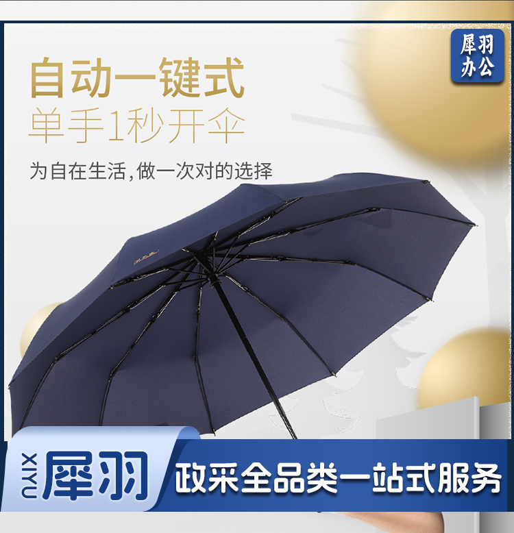 天堂 晴雨伞 10骨加固一键开收 易甩干简约全自动雨伞 藏青30729