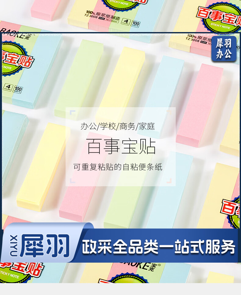 宝克(BAOKE) TZ2003百事贴 便利贴 彩色留言纸 便签标签纸 作业贴可重复自粘便条纸 学习办公用品文具 51×76mm 单包/4色
