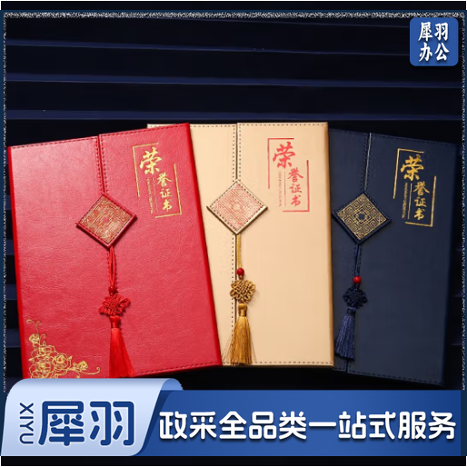 A4荣誉证书奖状外壳仿皮高档聘书封皮证书定制颁奖获奖优秀员工内页打印现代创意证书套年会礼品 【红色A4】竖版中国结-荣誉证书 单本装