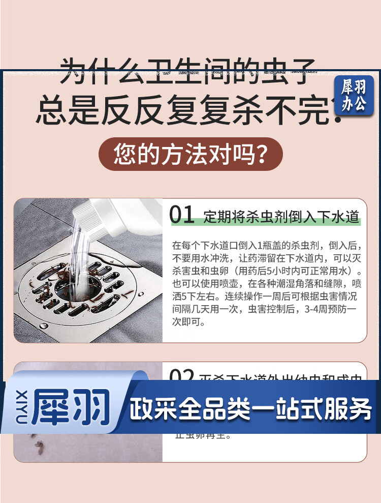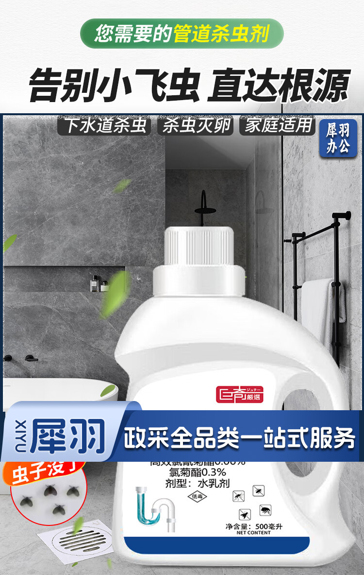 巨奇下水道杀虫剂小飞虫蛾蚋管道地漏除虫500ml(瓶)