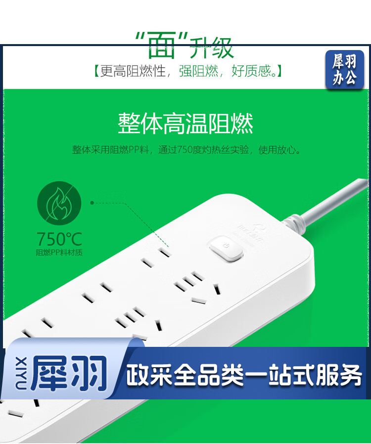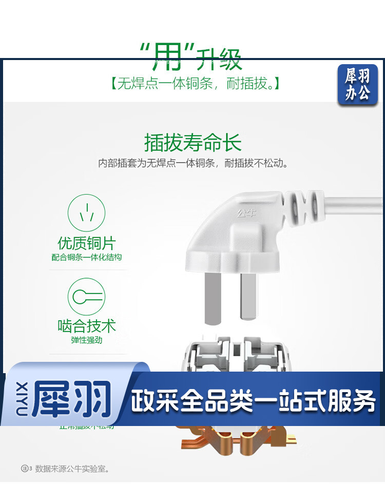 公牛(BULL)插座/插线板/插排/排插/接线板/拖线板 8位总控全长3米 GN-B3440