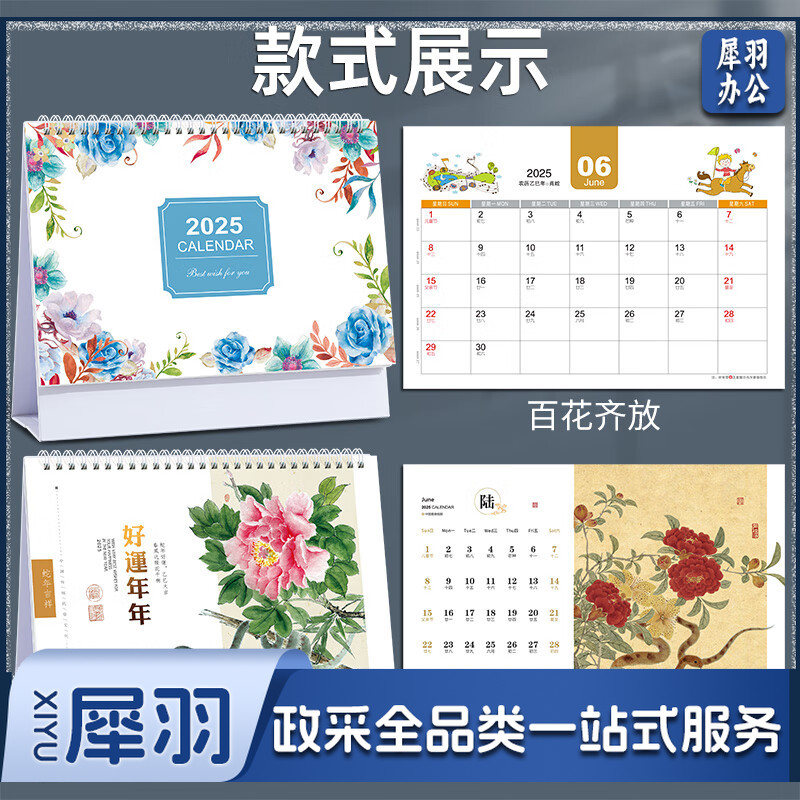 台历2025年蛇年大格子书写月历简约办公桌面日历百花齐放系列