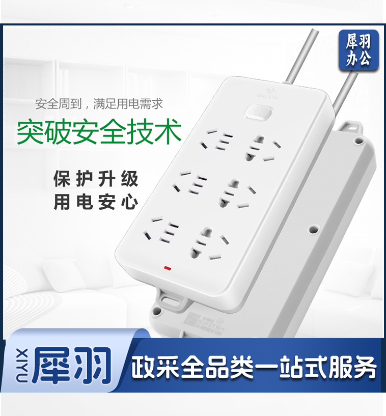 公牛(BULL) GN-109K 插座/插线板/插排/排插/接线板/拖线板 6位总控全长5米