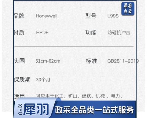 霍尼韦尔(Honeywell)安全帽 L99S新国标 HDPE工地电力 防砸抗冲击 白色