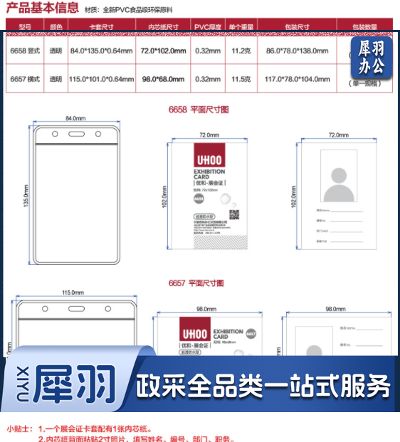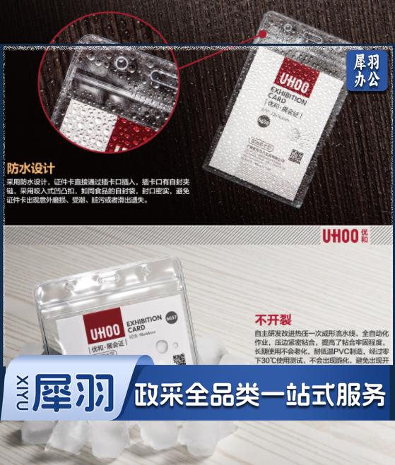优和(UHOO)工作牌防水PVC证件卡套 竖式 透明 工作证员工牌胸卡出入证