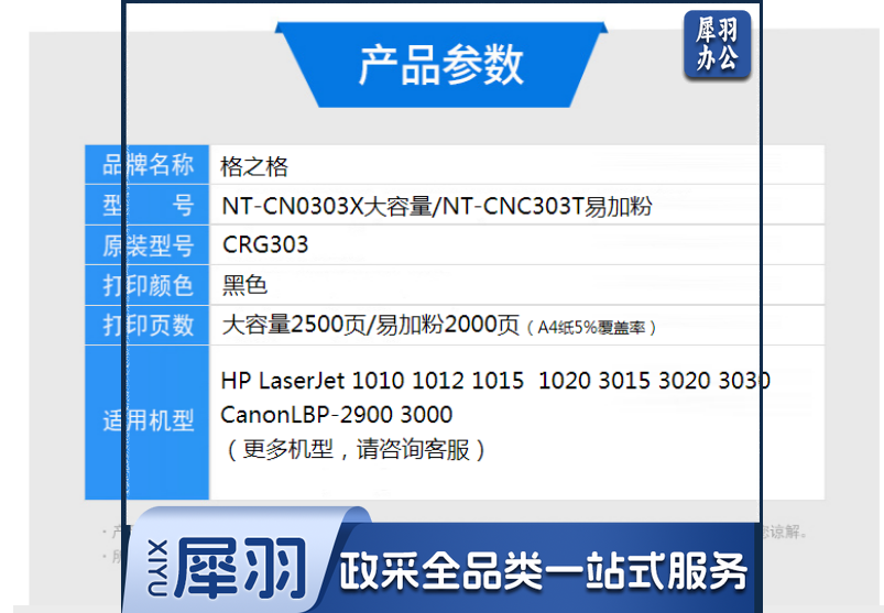 格之格CRG303 适用惠普1020 M1005 1020 1010 1012佳能LBP2900 NT-CNC303T易加粉2000页