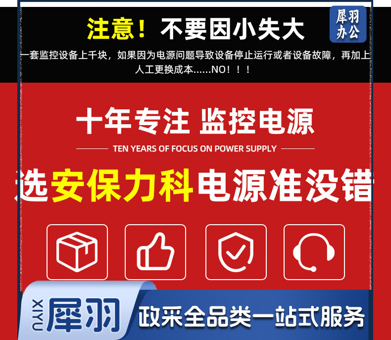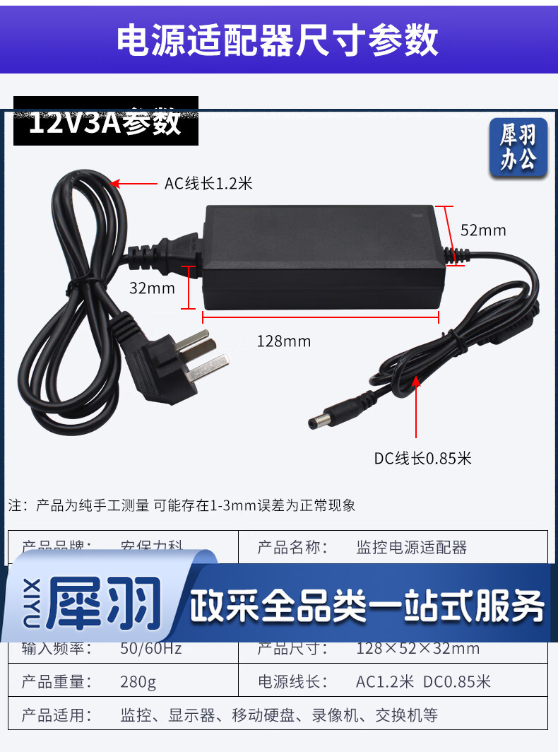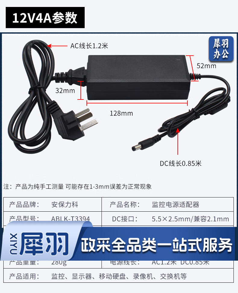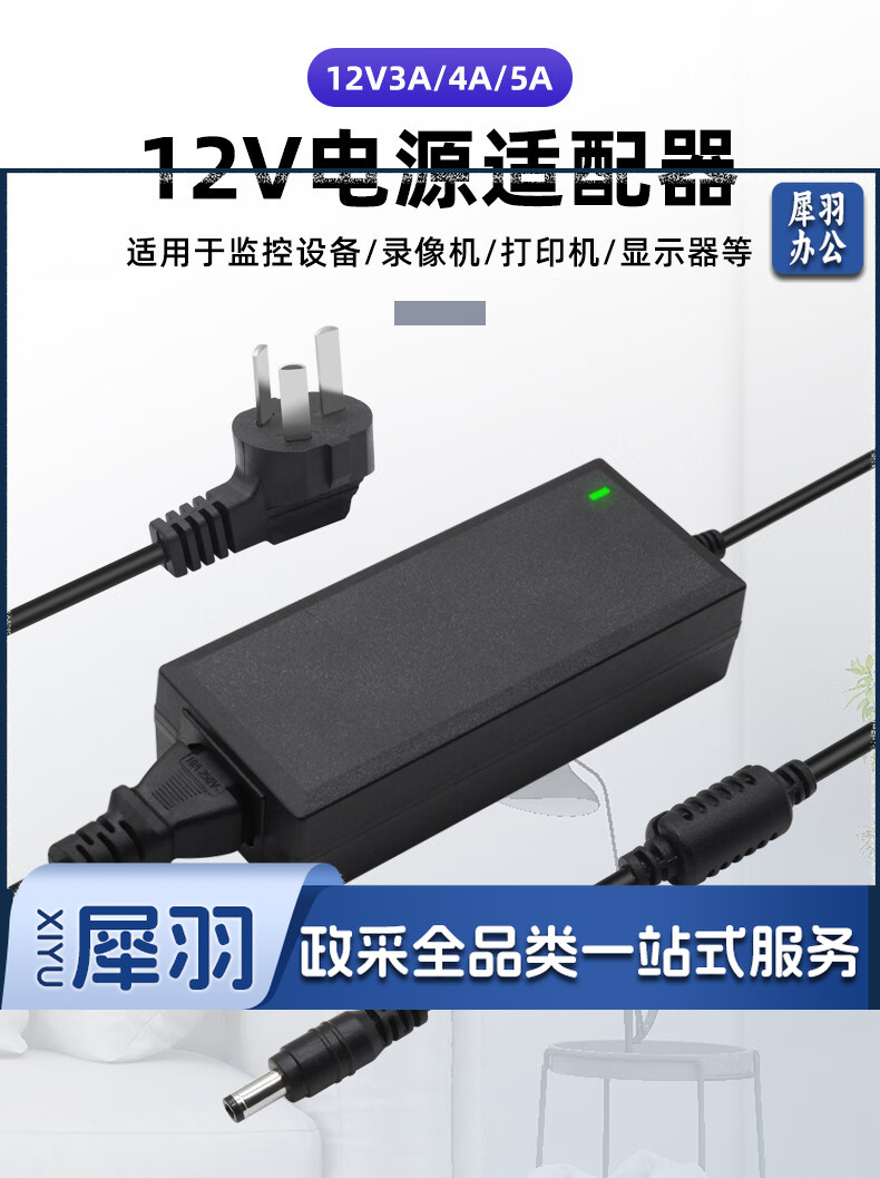 安保力科 室内监控电源适配器DC12V5A开关直流稳压器桌面式品字尾3脚插头