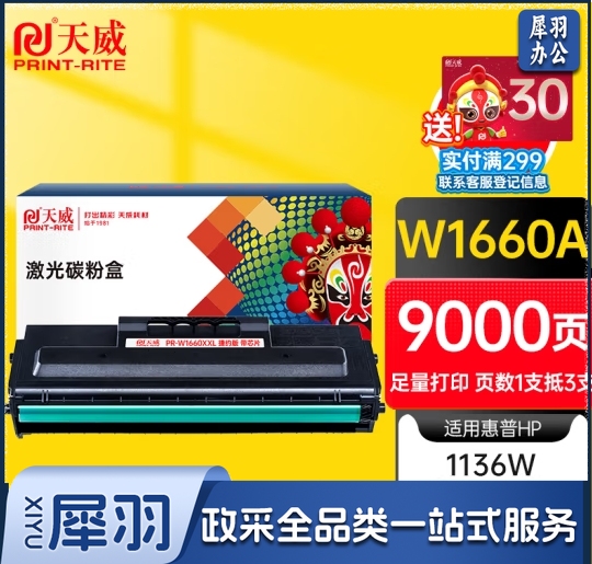 天威hp1136w硒鼓166a适用惠普w1660a 1188w硒鼓1188a 1188nw hp1008a硒鼓1008w打印机墨盒超大容量带芯片
