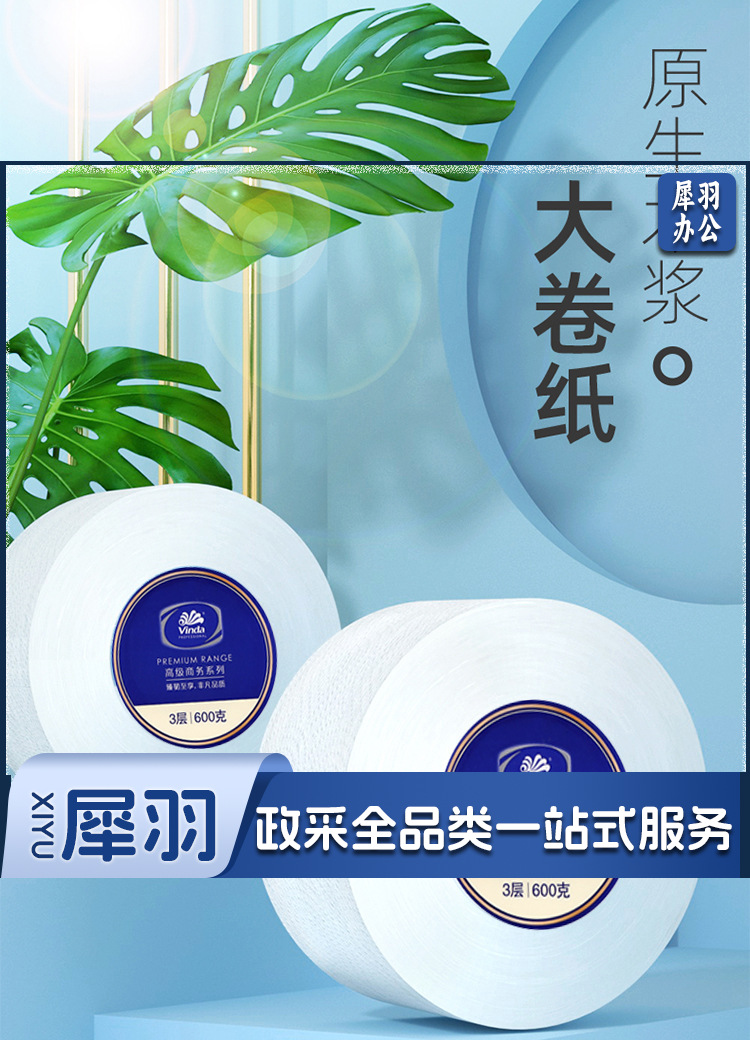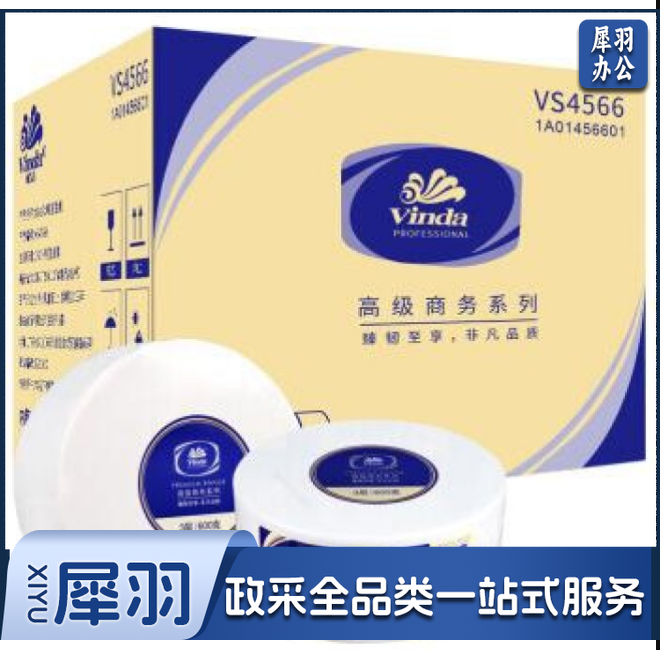 维达/Vinda 卷纸大盘纸商用酒店卫生间3层600克厕纸家用卫生纸12卷整箱(VS4566)