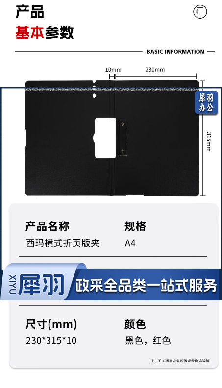西玛(SIMAA)8476 A4横式折页板夹文件夹 书写板夹会议夹写字板诗朗诵签约塑料夹板商务办公 试卷资料收纳夹 黑色