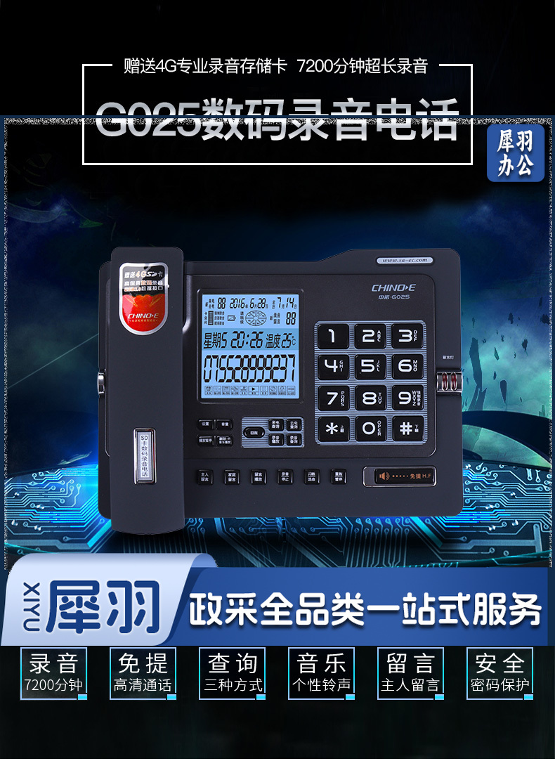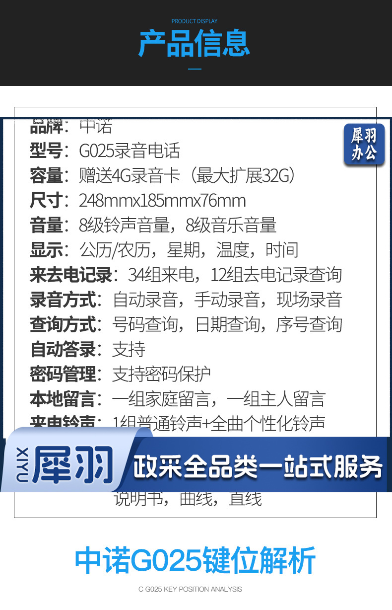 中诺 G025 带4G卡可扩容数码录音电话机座机电话办公智能自动固话机