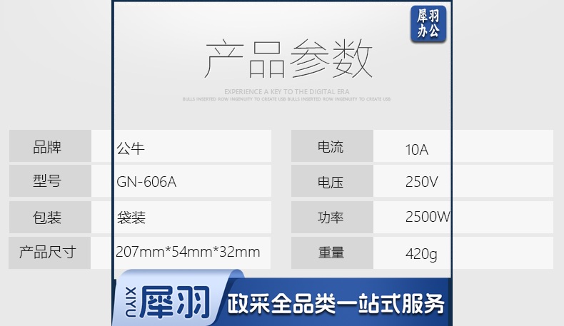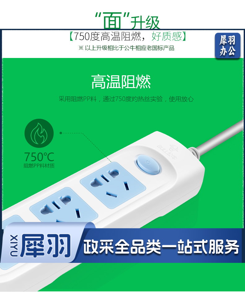 公牛(BULL)/插线板/插排/接线板GN-606A 1.8米