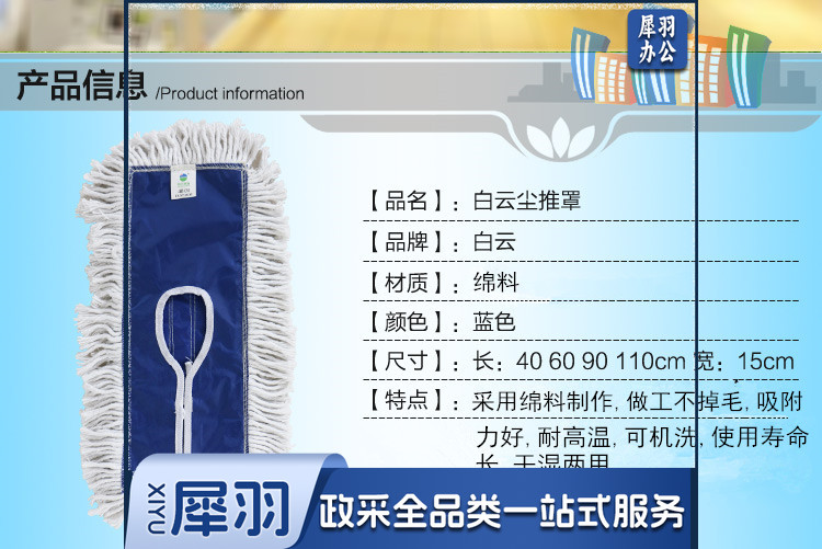 白云(BAIYUN CLEANING)尘推铝合金杆平板拖墩布排拖棉线大长拖把 40CM 尘罩