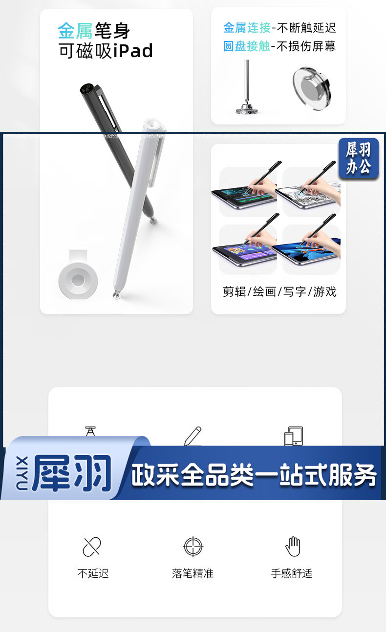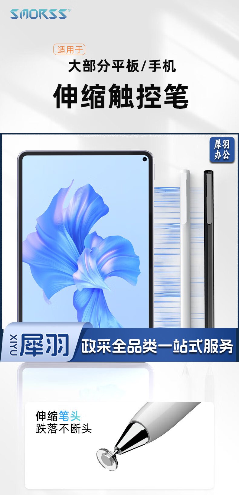 Smorss电容笔 触控笔 手写笔 可吸附iPad-升级金属笔芯 白色