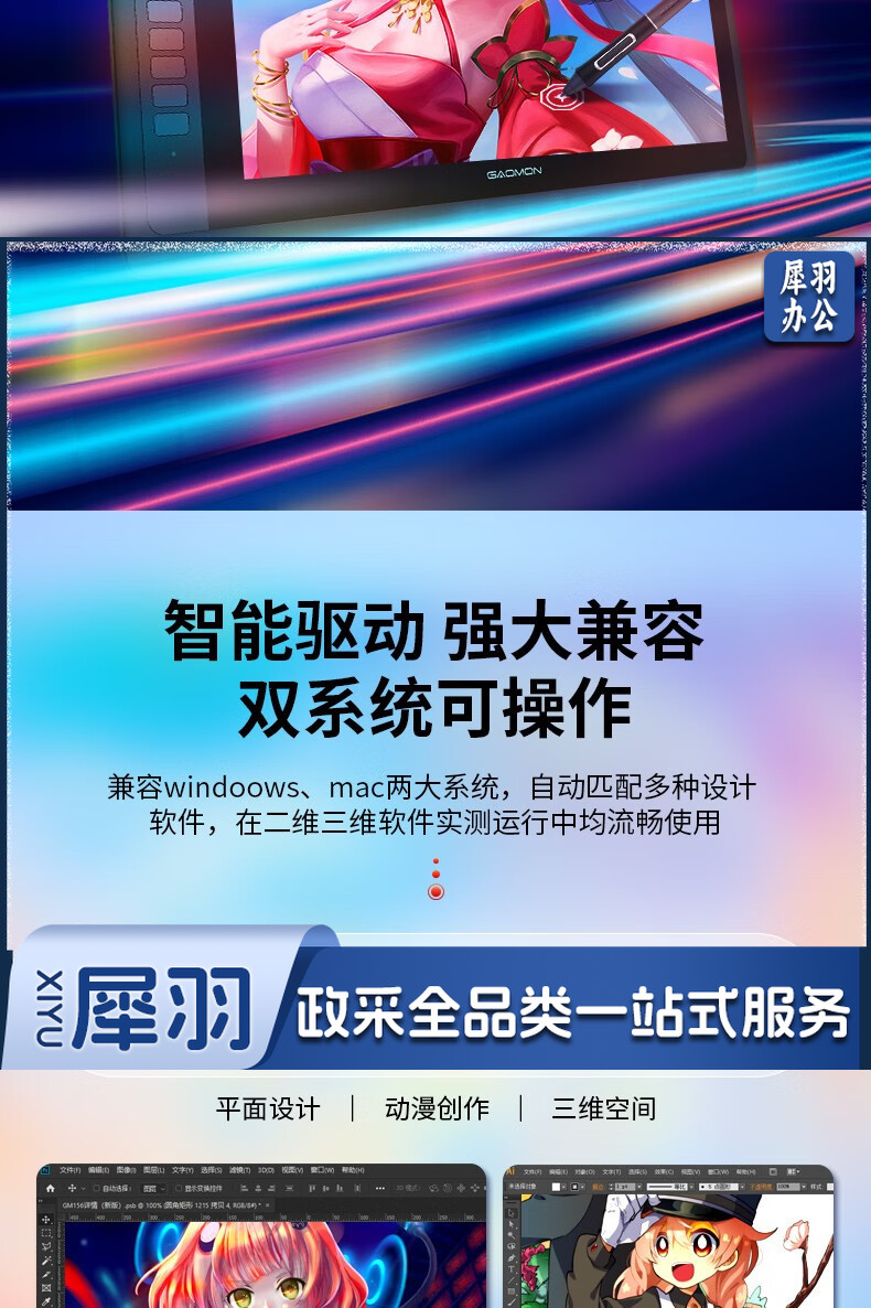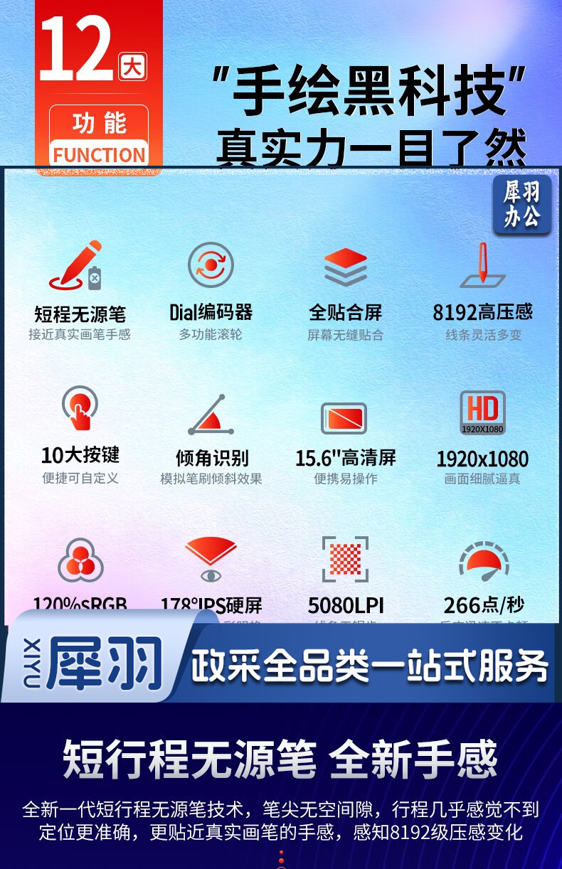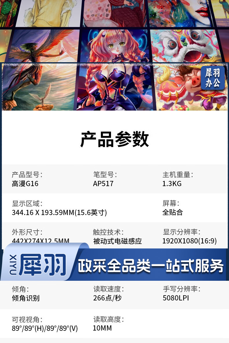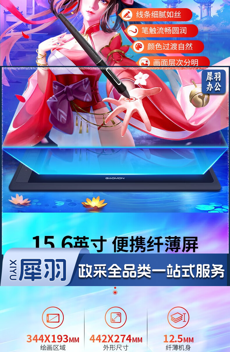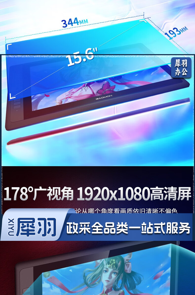 高漫 (GAOMON)G16新款全贴合手绘屏 无源无线笔 数位屏 手写屏 电脑专业绘画屏 磨砂黑