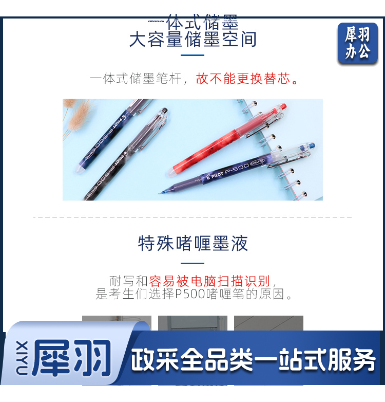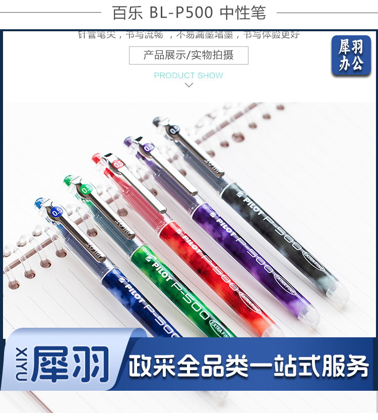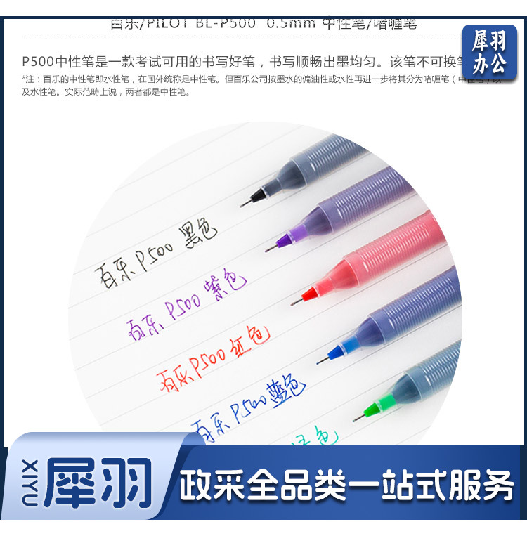 百乐(PILOT)BL-P50/P500 针管中性笔 0.5mm顺滑签字笔 考试财务用 黑色