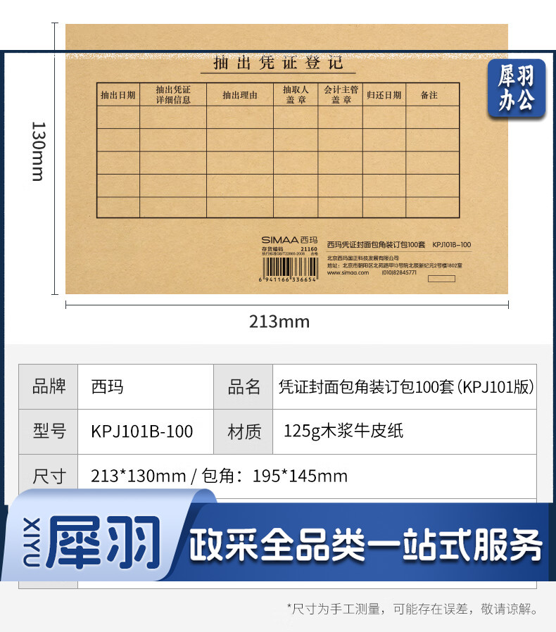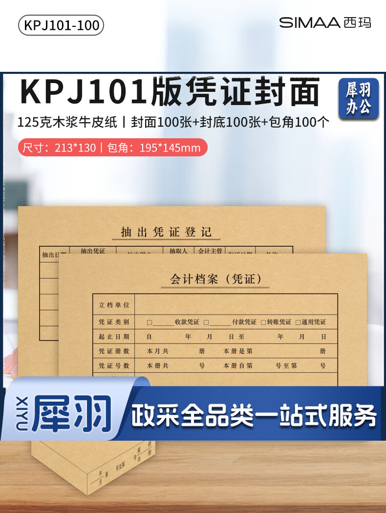 西玛(SIMAA) KPJ101凭证封面100套(含包角 )财务会计记账牛皮纸封皮包角装订存档