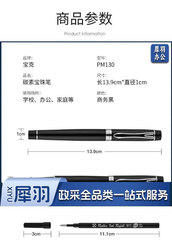 宝克(BAOKE)礼盒装 0.7mm黑色碳素宝珠笔 金属签字笔 商务签名笔 办公写笔 学生礼品文具 商务黑色 PM130 0.7mm碳素黑色宝珠笔 单支礼盒装