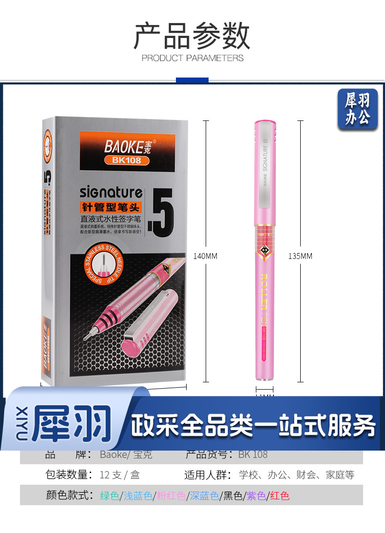 宝克(BAOKE)BK108直液式走珠笔彩色0.5mm针管中性笔速干办公水笔签字笔手账笔学生重点标记笔 文具 0.5mm 12支/盒 黑色