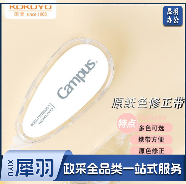 国誉(KOKUYO)WSG-TWT3508-1学生Campus原纸色替芯式修正带修改带涂改带 5mm*8m 可换替芯 本体 白色1个装